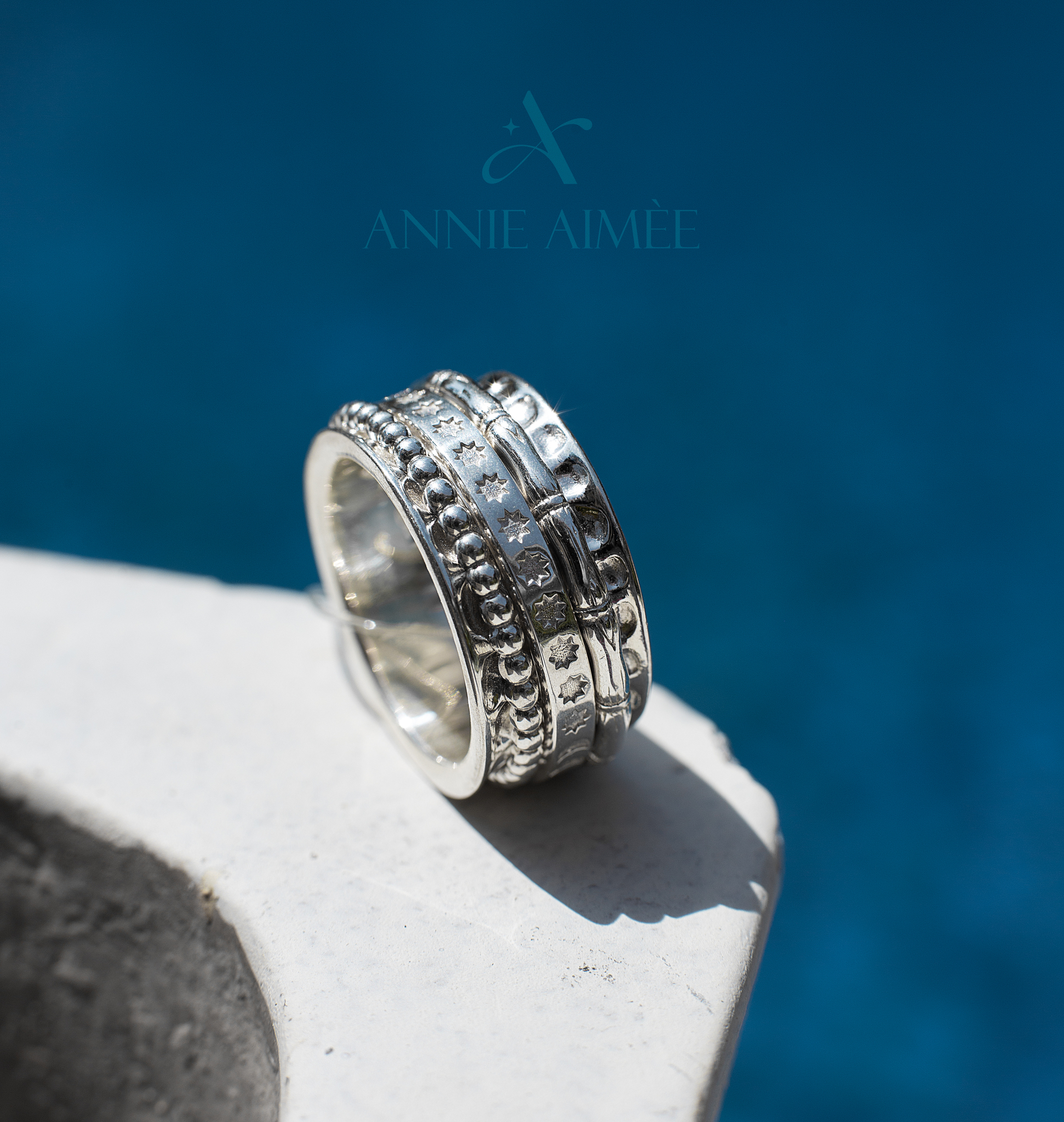 Окунитесь в воспоминания о тропических днях на берегу океана: солнечные лучи, согревающие вашу кожу, горячий песок под ногами, свежий соленый бриз океана и манящие пальмы. Кольцо-медитация TROPICAL, созданное по мотивам дикой природы, навевает воспоминания о летних днях, проведенных на песчаных пляжах.